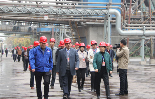 胡经文一行先后来到烧成车间、余热发电站、中控室,实地参观了干法水泥生产线的工艺流程、技术装备及余热资源的回收利用情况。他们边走边问,详细了解当前企业的生产经营状况,销售形势及存在的问题和困难。在中央控制室,看到从原材料进厂到水泥出厂的全自动化控制系统时,大家感到非常吃惊和好奇,纷纷向技术人员提出疑问,“回转窑内的温度有多高?”“摄像头能否耐得住高温?”等,工程技术人员一一进行了回答。