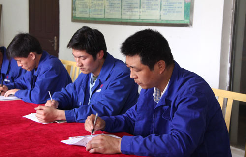 为加大员工培训力度,提升员工综合素质,今年以来,大地公司创新培训形式,完善培训机制,本着“立足岗位,切合实际,因岗施教,注重实效”的原则,把培训任务分解到各车间,各岗位。建立培训、考核、晋级一体化的激励机制,激发团队活力,形成人人学习,个个上进的良好氛围。 各车间结合工作实际,严格遵循公司各阶段培训活动规定的步骤和时间安排,列出学习计划,明确学习任务和时间,针对不同岗位不同员工的需求,采取集中学习、个人自学、研讨交流等方式,重点学习安全生产规章制度,岗位操作规程,业务流程等,通过理论知识测评,使职工找准自身存在的问题和薄弱环节,以便及时弥补和改进。确保培训取得实实在在的效果。 通过培训,满足了广大员工对知识、技能的需求,激发了员工的工作热情和团队活力,公司上下形成了学技术、比技能、争先进的良好环境。 烧成车间正在对班组进行理论知识测试 职工正在认真答题