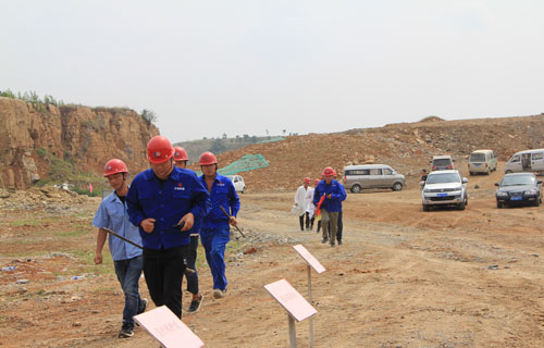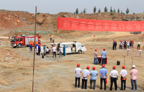 为认真贯彻落实安全生产月活动,提高员工应对突发事故的快速反应能力,应急处理能力和协调作战能力。 630日上午,大地公司在李庄水泥灰岩矿举行边坡坍塌事故应急救援演练。县政府党组成员、安监局局长步国旗,副局长秦丁琪,张八桥镇副镇长王宏伟、大地集团领导赵中要、丁双胜等出席和观摩了演练,全县各非煤矿山企业安全负责人和安管人员参加。