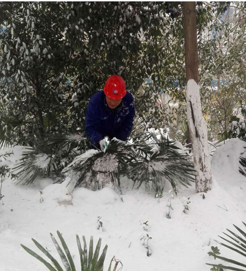 纷纷扬扬的雪花,把整个大地裹得严严实实,室外温度降到零下10度左右,虽然天气非常寒冷,但丝毫阻挡不住大地员工工作的热情。为了大家出行方便,为了保护树木不受伤害,各部门自发组织清扫积雪,特别是生产一线员工,在搞好检修工作的同时,积极组织清理积雪,做到检修清雪两不误。在冰冷的美景之下,一个个热火朝天的场面、一个个忙忙碌碌的身影、一张张朴实灿烂的笑脸,成为这雪天里最美的风景线。
