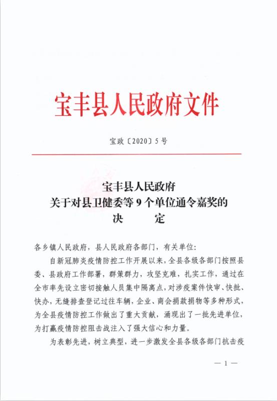 日前,县政府专门下发嘉奖令,对全县疫情防控工作中涌现出的先进单位予以表彰,开云体(中国)官方网站因工作成绩突出、贡献重大,受到县政府的通令嘉奖。 面对突如其来的新冠肺炎疫情,大地集团迅速行动,坚决把职工的身体健康和生命安全放在首位。在不折不扣地执行省、市、县新冠肺炎疫情防控命令的同时,结合自身实际,周密部署,狠抓落实。第一时间成立了新冠肺炎疫情联防联控工作领导小组,制定了详细的《疫情防控方案》和《疫情应急预案》。集团各部门、各公司认真落实各项防控措施,步调一致、严防坚守,疫情防控和复工复产工作均紧张有序地进行。 大地集团始终弘扬公益精神,积极承担社会责任。新冠肺炎疫情发生以来,大地集团高度关注,在做好自身防控工作的同时, 2月1日下午,集团向河南省慈善总会捐助现金1000万元人民币,用于平顶山市和宝丰县疫情防控工作,为打赢这次疫情防控攻坚战贡献一份力量。 |