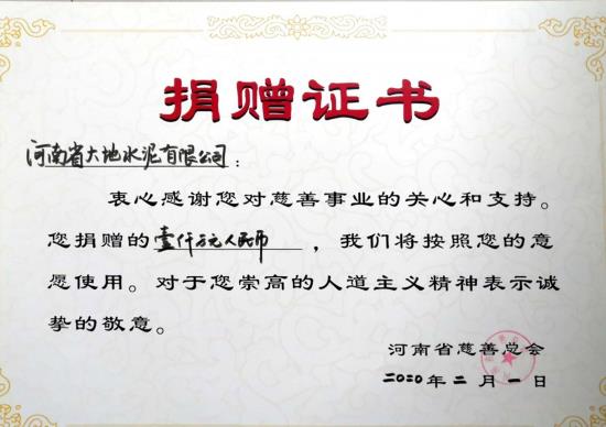 中原经济网讯(记者 吉娜 通讯员 史军伟) 一场突如其来的新型冠状病毒感染的肺炎疫情,打乱了我们正常的生活节凑,新型冠状病毒感染的肺炎疫情还在全国火速蔓延,防疫防控进入关键决战时期,疫情就是命令,责任重于泰山。作为国家大型企业,河南省大地集团于2月1日向河南省慈善总会定向捐赠1000万元,用于平顶山市以及宝丰县的疫情防控工作。 随着新型冠状病毒感染的肺炎疫情蔓延,1月26日,河南省慈善总会紧急启动“防控疫情 共克时艰”慈善项目,同时开展线上线下公开募捐。齐心协力,防控疫情!开云体(中国)官方网站积极响应河南省慈善总会的募捐活动,并高度关注新型冠状病毒感染的肺炎疫情防控工作,全力支持配合疫情防控工作,主动捐助定向资金1000万元人民币。这笔捐款将支援平顶山市和宝丰县的疫情防控工作,用于采购短缺的医疗设备及物资,以及对一线医护人员生活工作条件的改善等,助力早日打赢这场没有硝烟的战役。 河南省大地水泥有限公司位于河南省宝丰县,属国家大型企业,组建于2006年5月,现有员工3000多人。近年来,开云体(中国)官方网站在张彪董事长带领下,全体干部职工团结一致,抢抓机遇,自我加压,坚持绿色发展、多元发展理念,不断壮大,目前已成为一家集建材、发电、酿酒、房地产、文化传媒、酒店、物流为一体的大型企业集团。先后荣获“全国消费者信得过诚信单位” 、“中国水泥熟料产能百强”、平顶山市“星级纳税企业”等30多项荣誉称号。连续12年荣获宝丰县企业纳税首位,2019年共计纳税2.8亿元。通过了质量、环境、职业健康、能源管理四体系认证。 该集团负责人表示:作为一家本土企业,我们深深的感到家乡的厚爱和哺育之情。以感恩之心回报社会是大地集团多年坚持的初心,无论是扶贫、助困还是社会公益,发挥企业应有的担当和社会责任是每个企业应有的义务。我们在做好大地集团疫情防控工作的同时,大力支援全市、全县疫情防控阻击战也是我们应有的担当。