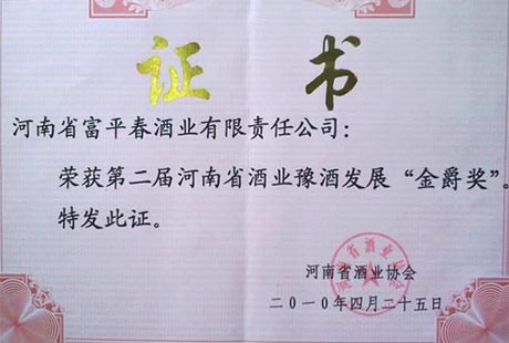 首页 >> 走进大地 >>资质荣誉 >> 富平春酒业荣获“金爵奖”