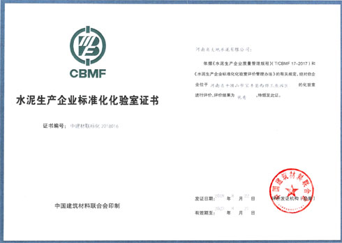 首页 >> 走进大地 >>资质荣誉 >> 优秀水泥化验室