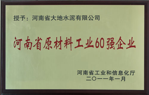首页 >> 走进大地 >>资质荣誉 >> 河南省原材料工业60强