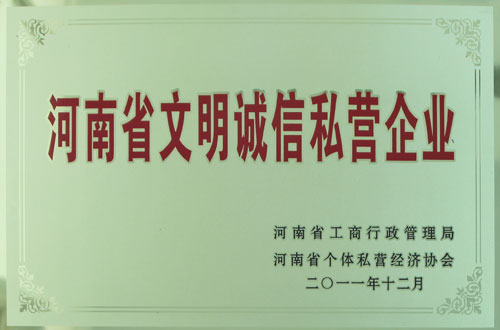 首页 >> 走进大地 >>资质荣誉 >> 河南省文明诚信私营企业